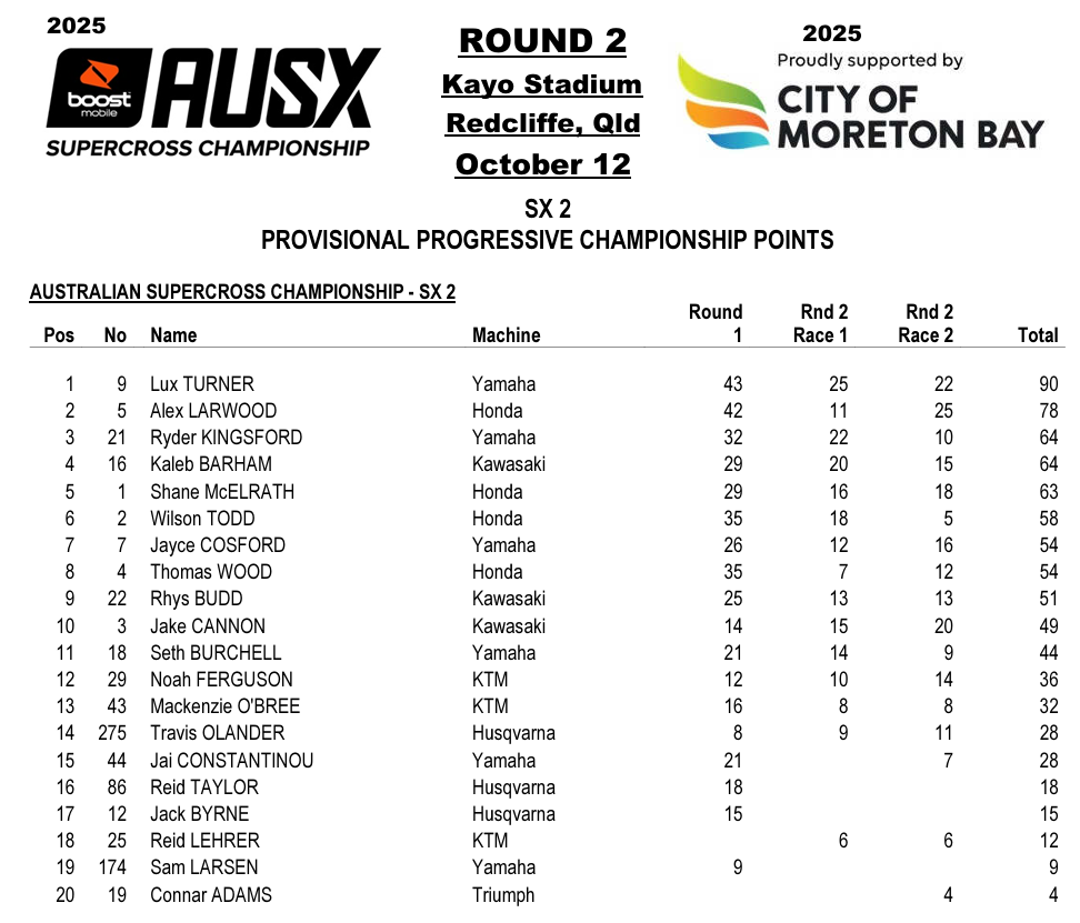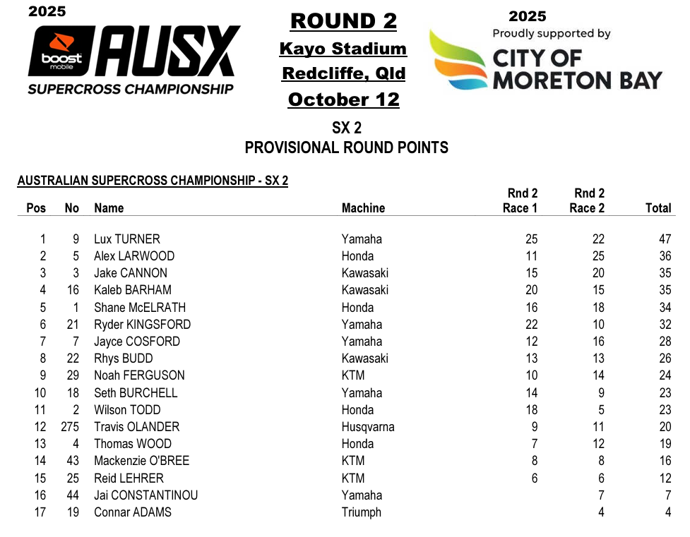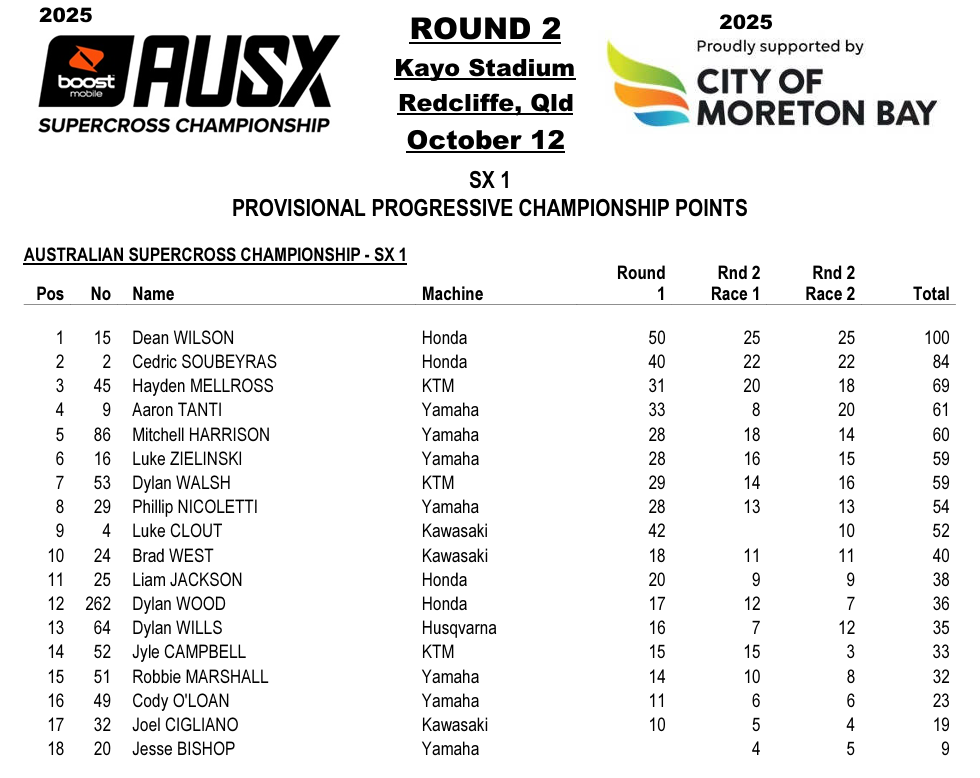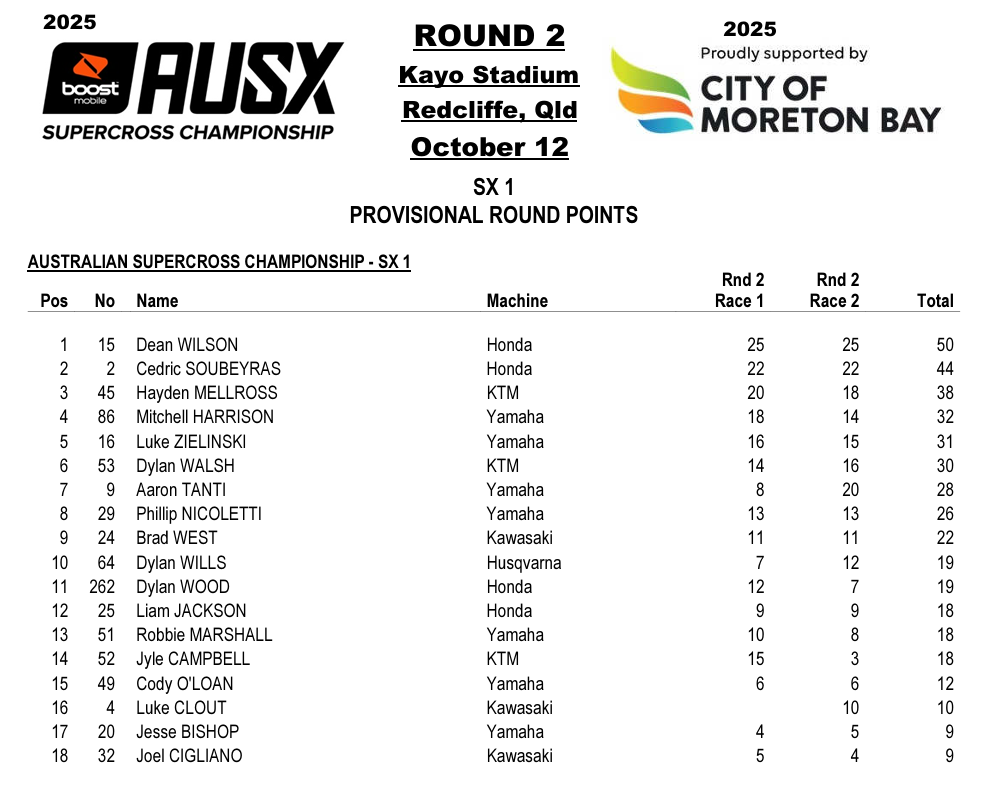 De tweede ronde van het Australisch Supercross Kampioenschap (AUSX) in Redcliffe leverde opnieuw spektakel van de bovenste plank. In een vol Kayo Stadium reed Dean Wilson naar een indrukwekkende overwinning in de SX1-klasse, terwijl Lux Turner opnieuw domineerde bij de SX2.