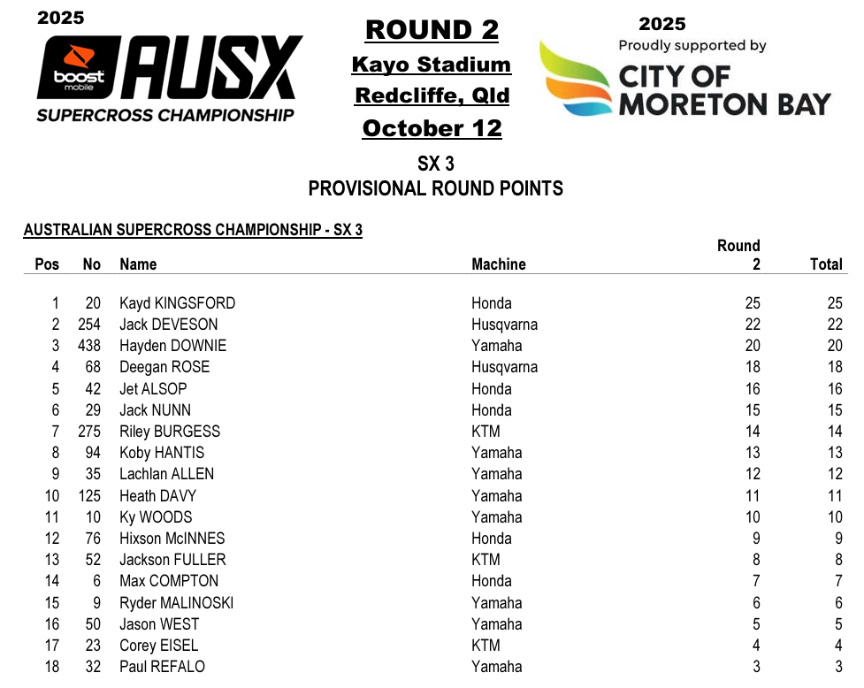 De 2025 Boost Mobile AUSX Supercross Championship trekt nu verder naar Sharks Stadium in Cronulla, waar de strijd om de titel onverminderd doorgaat. Bekijk hieronder de uitslagen van de tweede ronde: