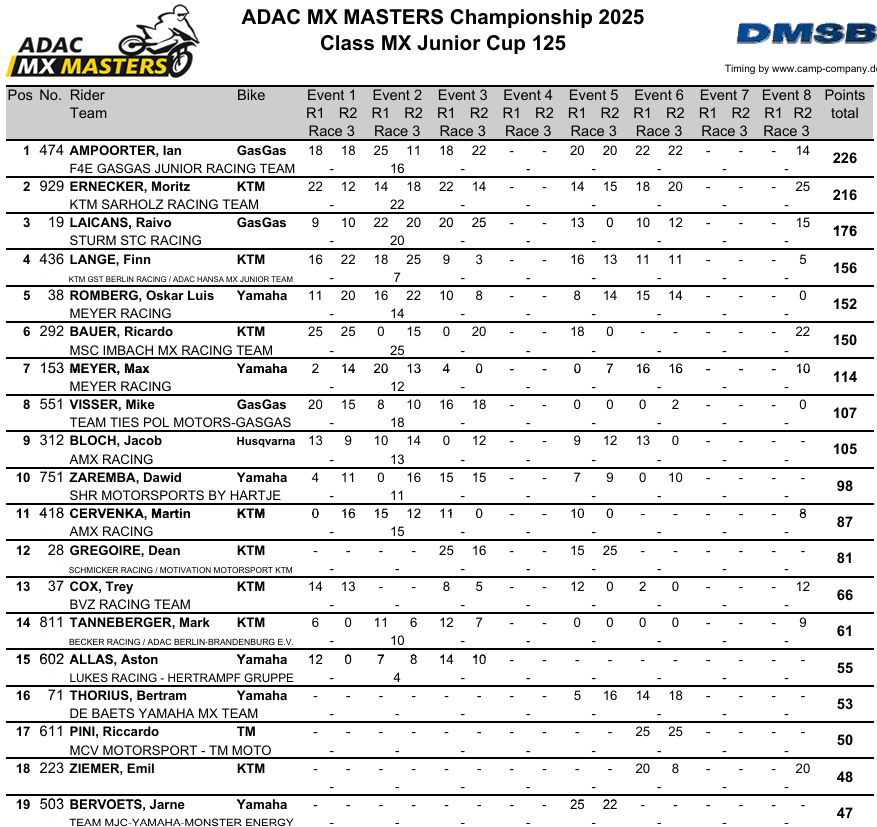 Met de titel van Ian Ampoorter en de manchezege van Moritz Ernecker kwam er in Holzgerlingen een mooi slot aan een spannend seizoen in de ADAC MX Junior Cup 125.