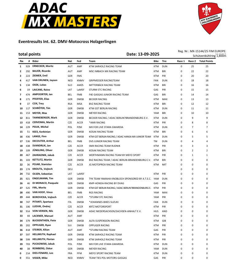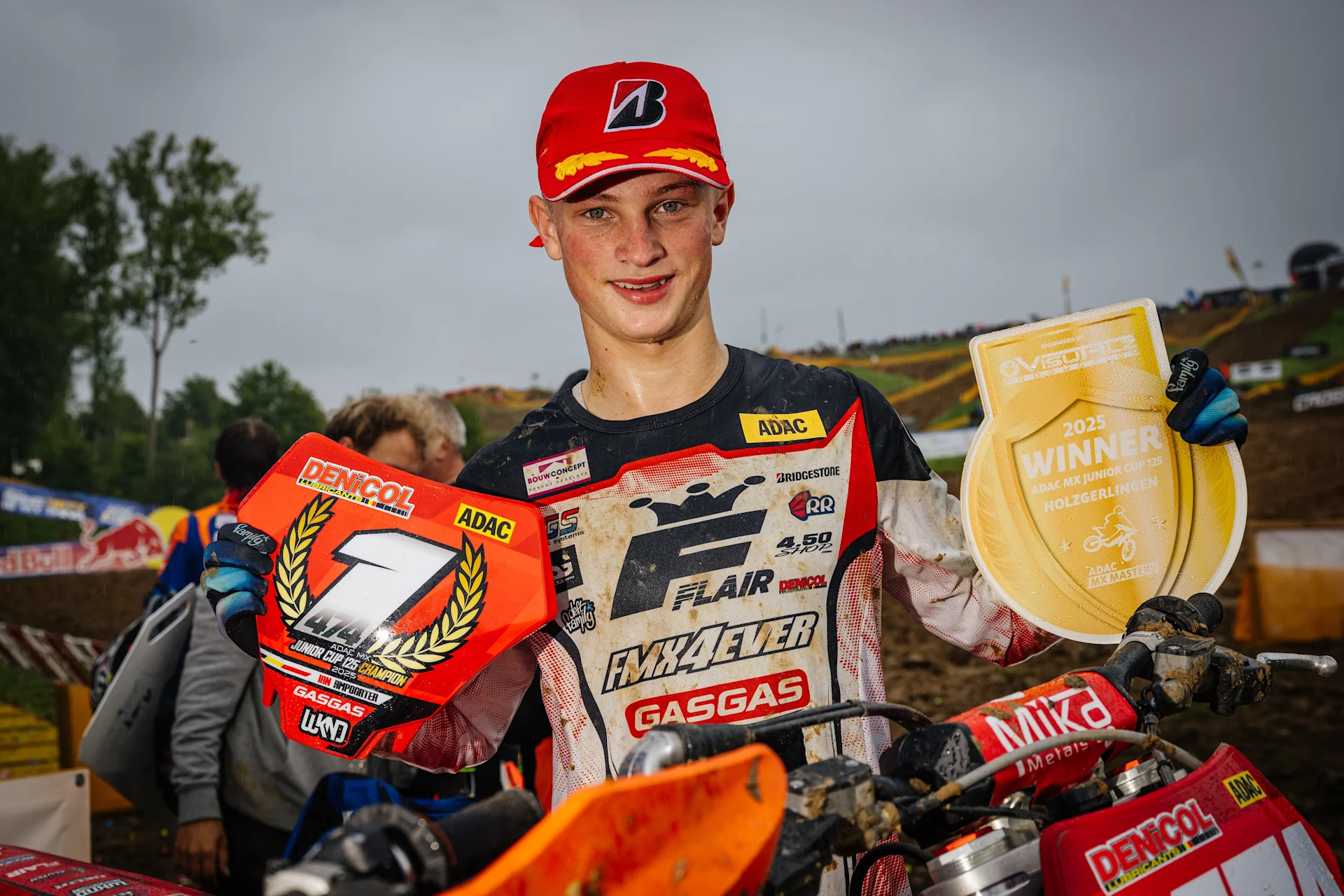 De finale van de ADAC MX Junior Cup 125 werd afgelopen weekend verreden in Holzgerlingen. Door de zware omstandigheden op de baan werd er slechts één manche afgewerkt, maar die ene race leverde toch genoeg spektakel én beslissingen op in de strijd om de titel.