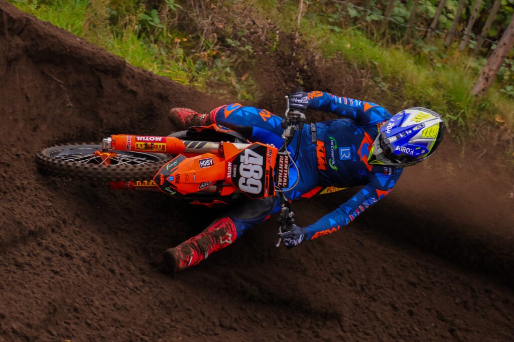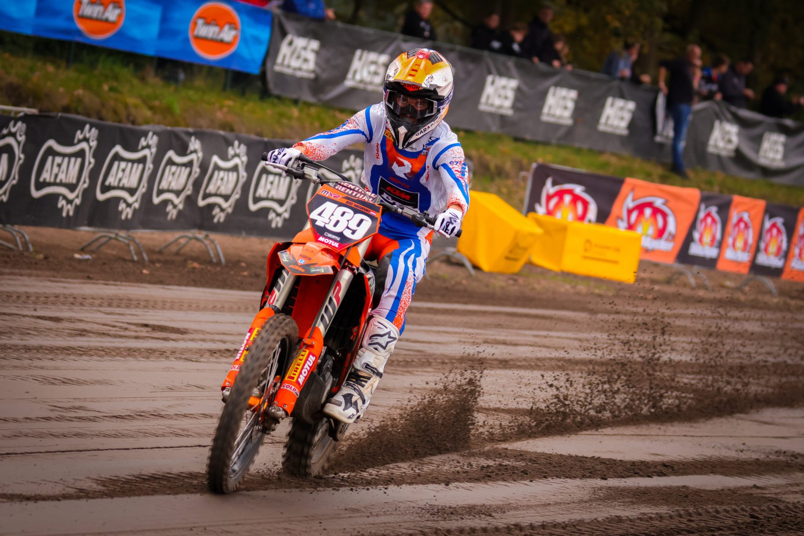 Door het grote aantal deelnemers werd er gewerkt met twee groepen. In groep 1 wist Jens Walvoort de snelste tijd op de klokken te zetten, gevolgd door Ten Kate en Dani Heitink, terwijl in groep 2 Ivano van Erp op zijn KTM de snelste tijd reed, voor Jarne Bervoets en Dean Gregoire. In de eerste manche pakte Jens Walvoort direct de holeshot, gevolgd door Maxime Lucas, Dean Gregoire, Damian Wedage en Roan Tolsma. Walvoort wist een constant tempo aan te houden en reed weg bij zijn concurrenten. Halverwege de manche had hij een voorsprong van zo’n 20 seconden opgebouwd, maar de wedstrijd werd afgevlagd vanwege een rode vlag situatie. Uiteindelijk finishte Walvoort als winnaar, gevolgd door Maxime Lucas en Dean Gregoire. Ten Kate en Tolsma maakten de top vijf compleet, waarmee de rijders een solide uitgangspositie hadden voor de tweede manche.
