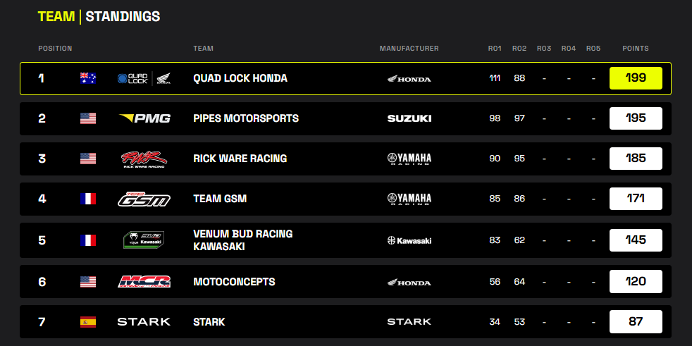 Voor de laatste twee rondes heeft het team Colt Nichols aangetrokken als vervanger. Met Nichols hoopt Pipes Motorsports alsnog het constructeurskampioenschap binnen te halen; momenteel staat het team vier punten achter Quad Lock Honda.