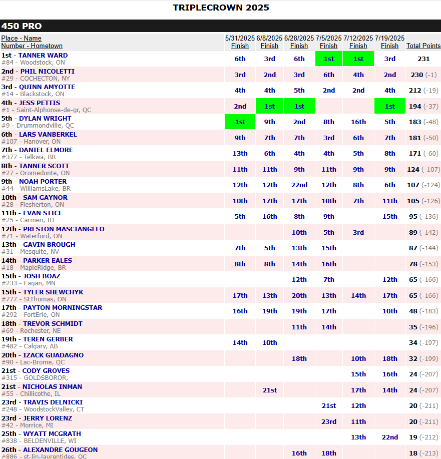De zesde ronde van het Canadees Kampioenschap in Moncton werd er eentje om niet snel te vergeten. Tijdens de eerste manche begon het te regenen, wat ervoor zorgde dat de tweede manche werd verreden onder zware en modderige omstandigheden. Het maakte het voor de rijders extra uitdagend, maar ook spectaculair voor de toeschouwers.