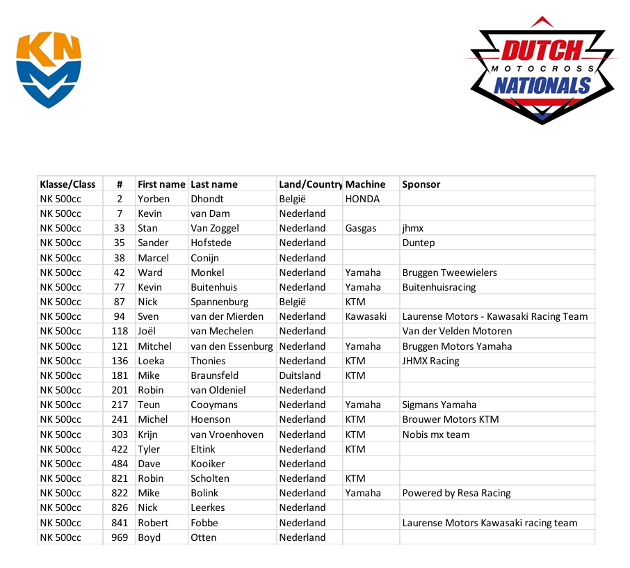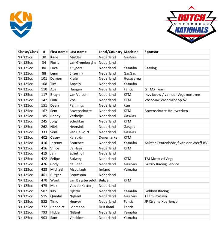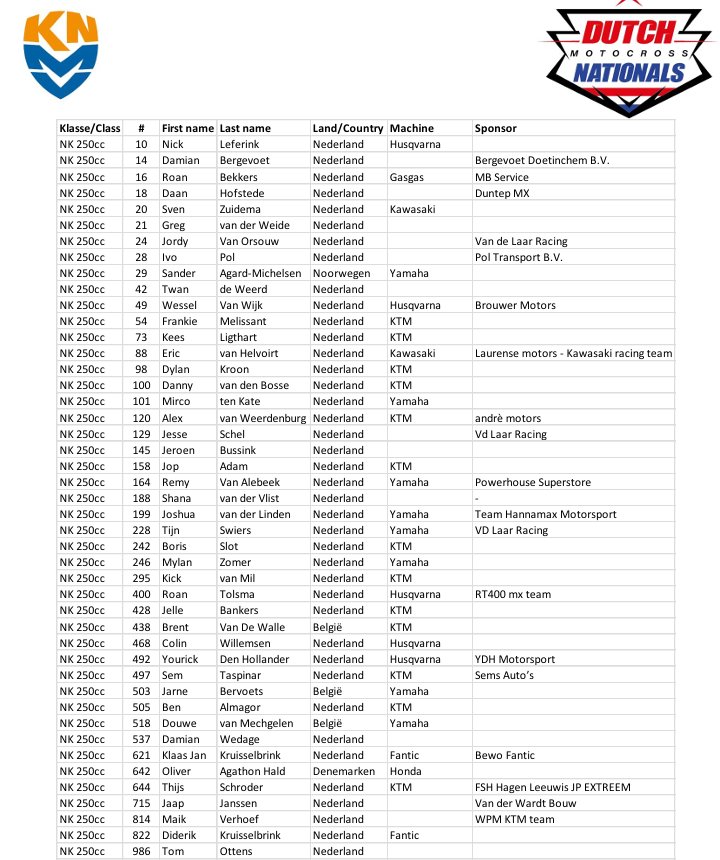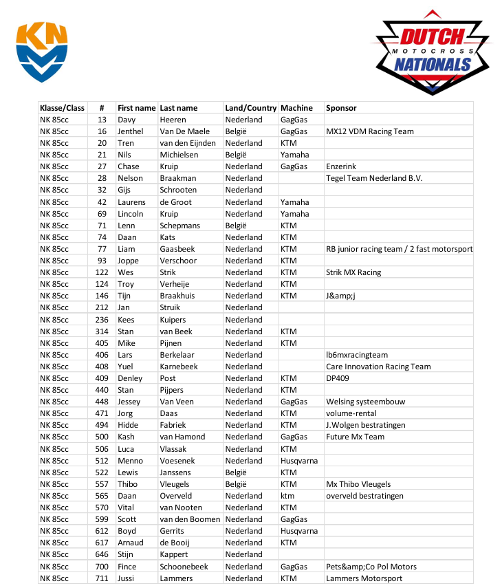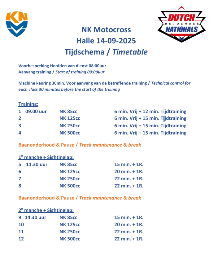 Bekijk het tijdschema en de deelnemerslijsten van het NK Motorcross Halle hieronder: