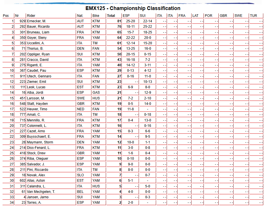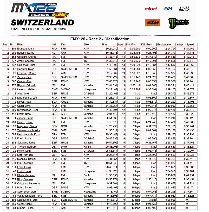 De EMX125-wedstrijd in Zwitserland werd verreden onder zware omstandigheden en leverde een ware modderstrijd op. Uiteindelijk was het Ricardo Bauer die met de dagzege naar huis ging.