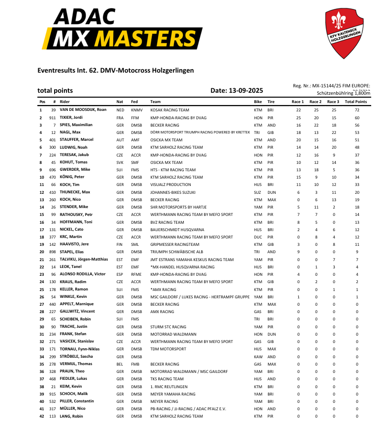 Met een 2-1-1 dagscore pakte Van de Moosdijk de eindzege in Holzgerlingen en stelde daarmee de titel veilig. Jordi Tixier en Max Spies maakte het podium compleet.