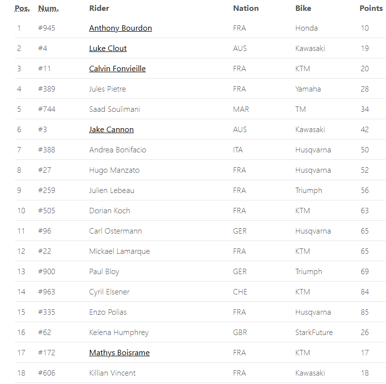 Bekijk hieronder de uitslagen van de Supercross Paris 2025: