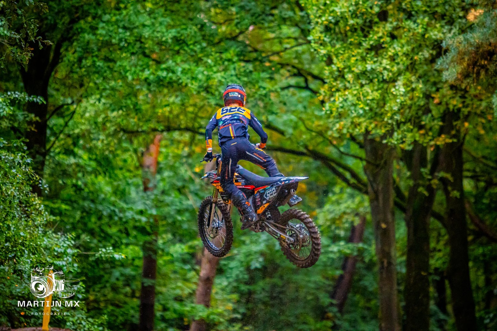 In de tijdtraining zette Jayson van Drunen de snelste tijd neer, nipt voor Heuver. Dex van den Broek klokte de derde tijd. De eerste manche begon met een holeshot van Tim Appelo, gevolgd door Heuver en Van den Broek. Al snel nam Heuver de leiding over en reed weg van de rest. Met een indrukwekkend tempo pakte hij de manchezege, met maar liefst 35 seconden voorsprong op Van Drunen. Van den Broek werd derde, gevolgd door Sem van Helvoirt en Vince van Hoof.
