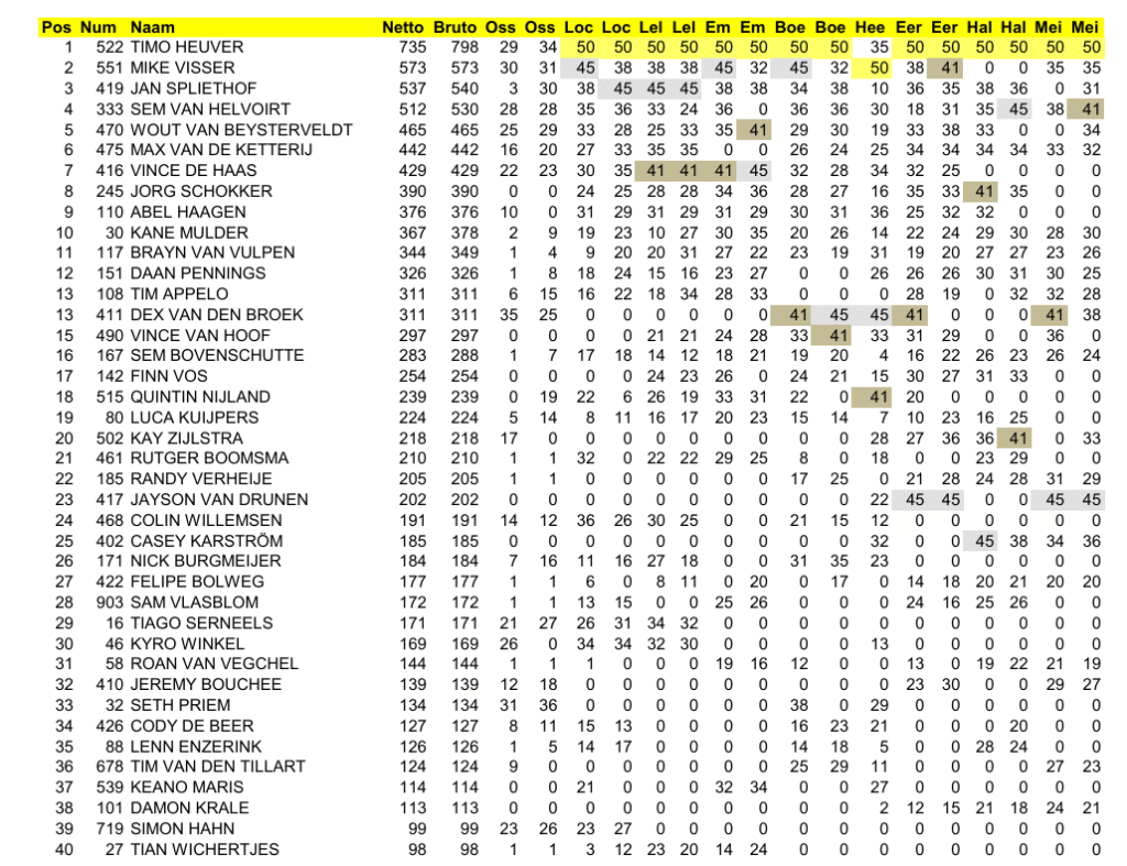 Bekijk hieronder de uitslagen en de tussenstand in het kampioenschap: