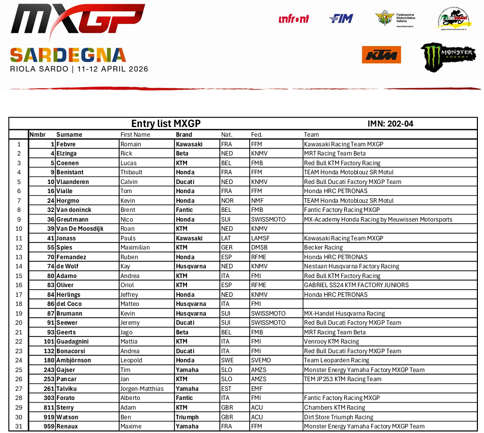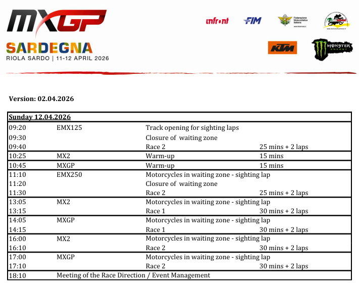 De vierde ronde van het FIM Motocross World Championship staat komend weekend op het programma in het Italiaanse Riola Sardo. Op 11 en 12 april trekt het WK-circus naar Sardinië voor opnieuw een belangrijk hoofdstuk in het seizoen 2026.